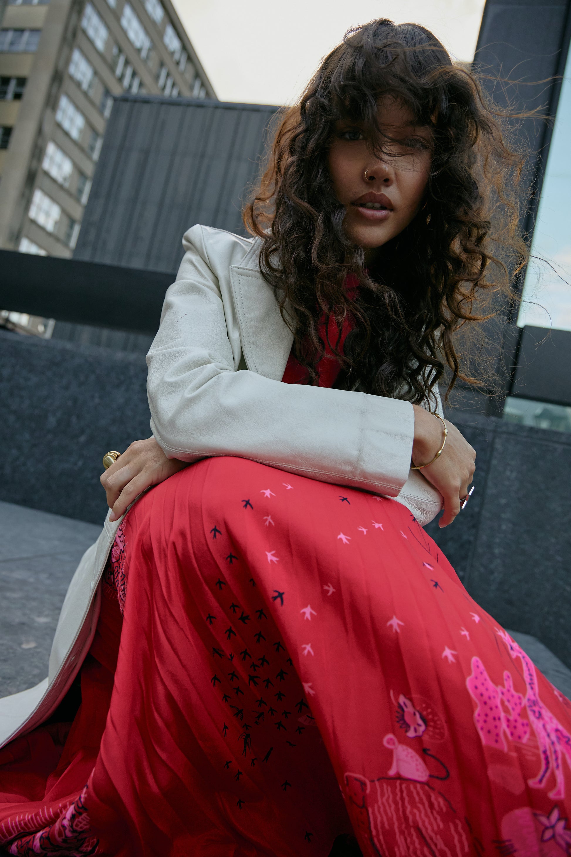 Beautiful Valentino red maxi dress - a true statement piece for lovers of high fashion. Featuring flowing accordion pleats, intricate floral patterns, and an effortlessly dramatic silhouette, this designer dress blends romance and power with signature Valentino elegance. Made in Italy.