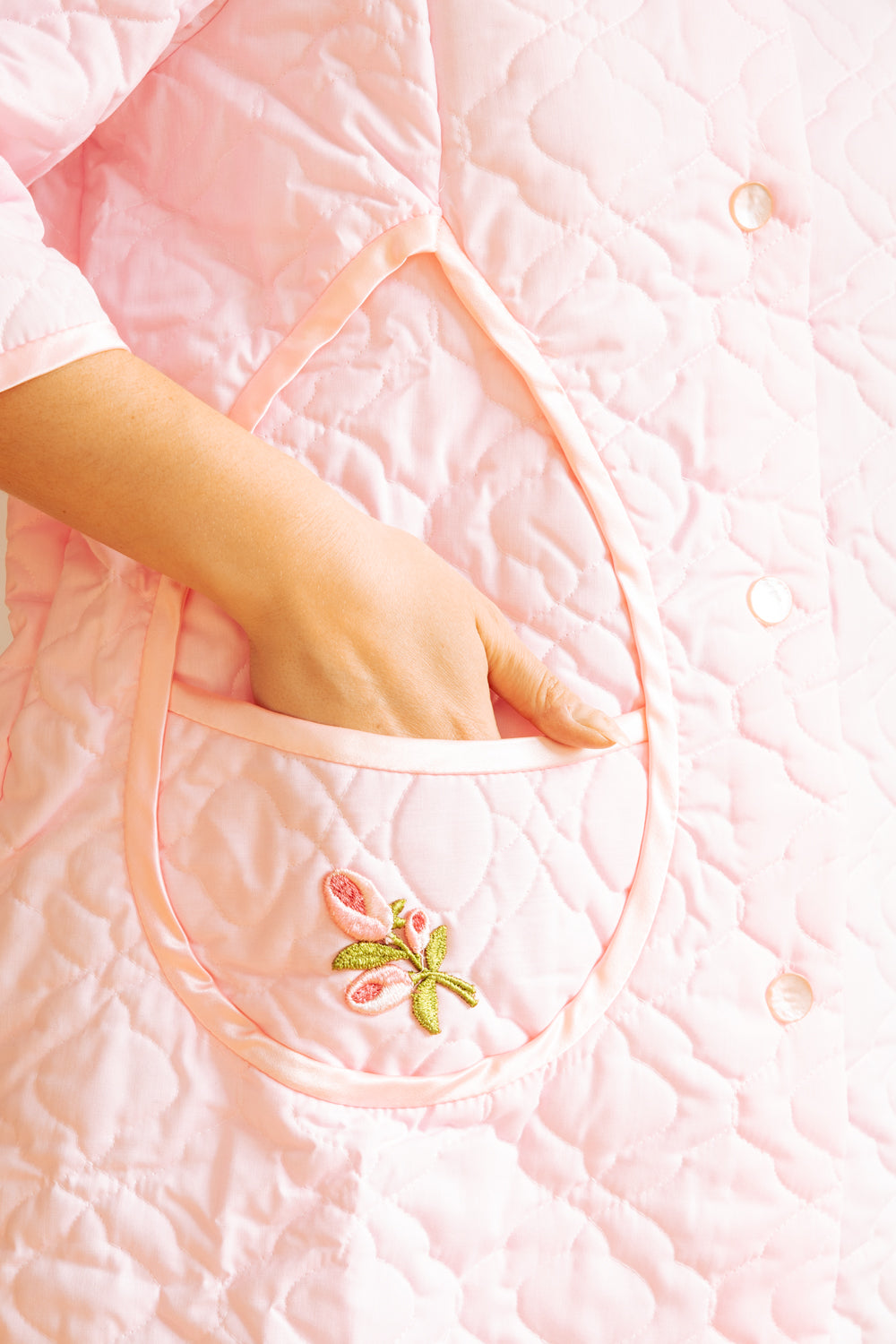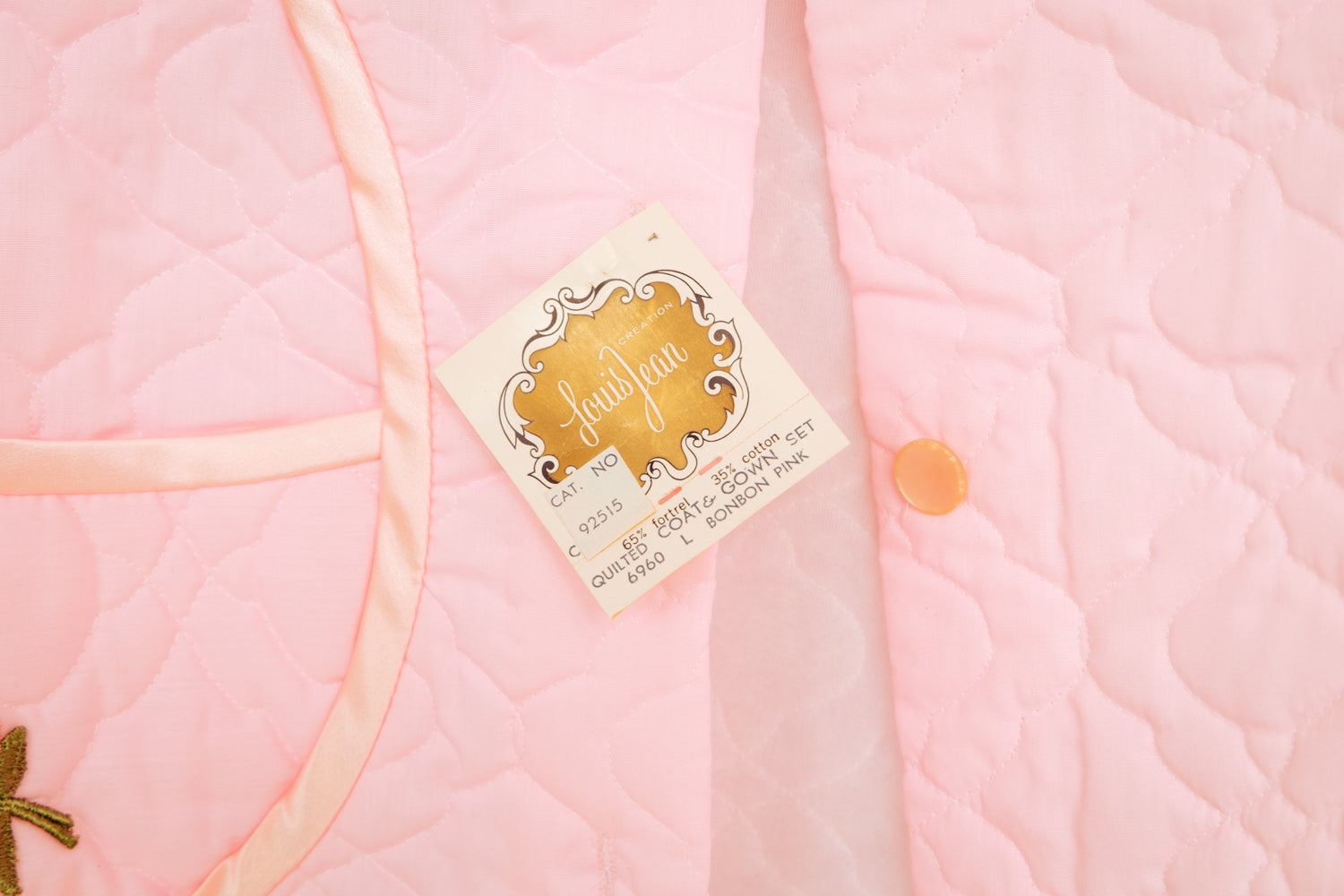 Vintage pink 60’s retro sleeper jacket - new with tags. Quilted jacket With embroidered pocket detail.