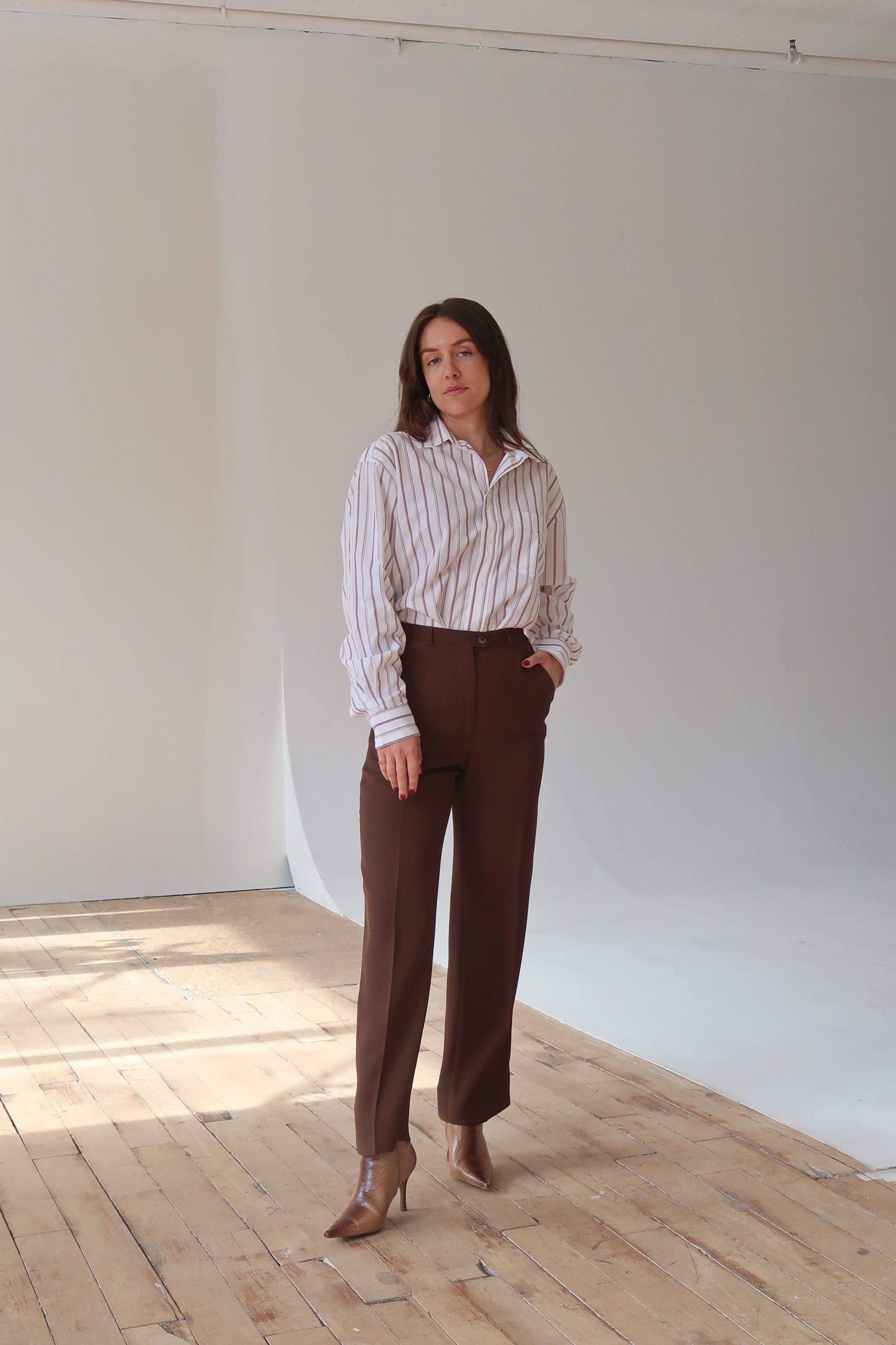 This vintage Yves Saint Laurent shirt from the late 70s offers a timeless, retro-inspired style with its white, red, and pink stripes. Perfect for those who love classic designer fashion, this shirt is made for comfort and durability.