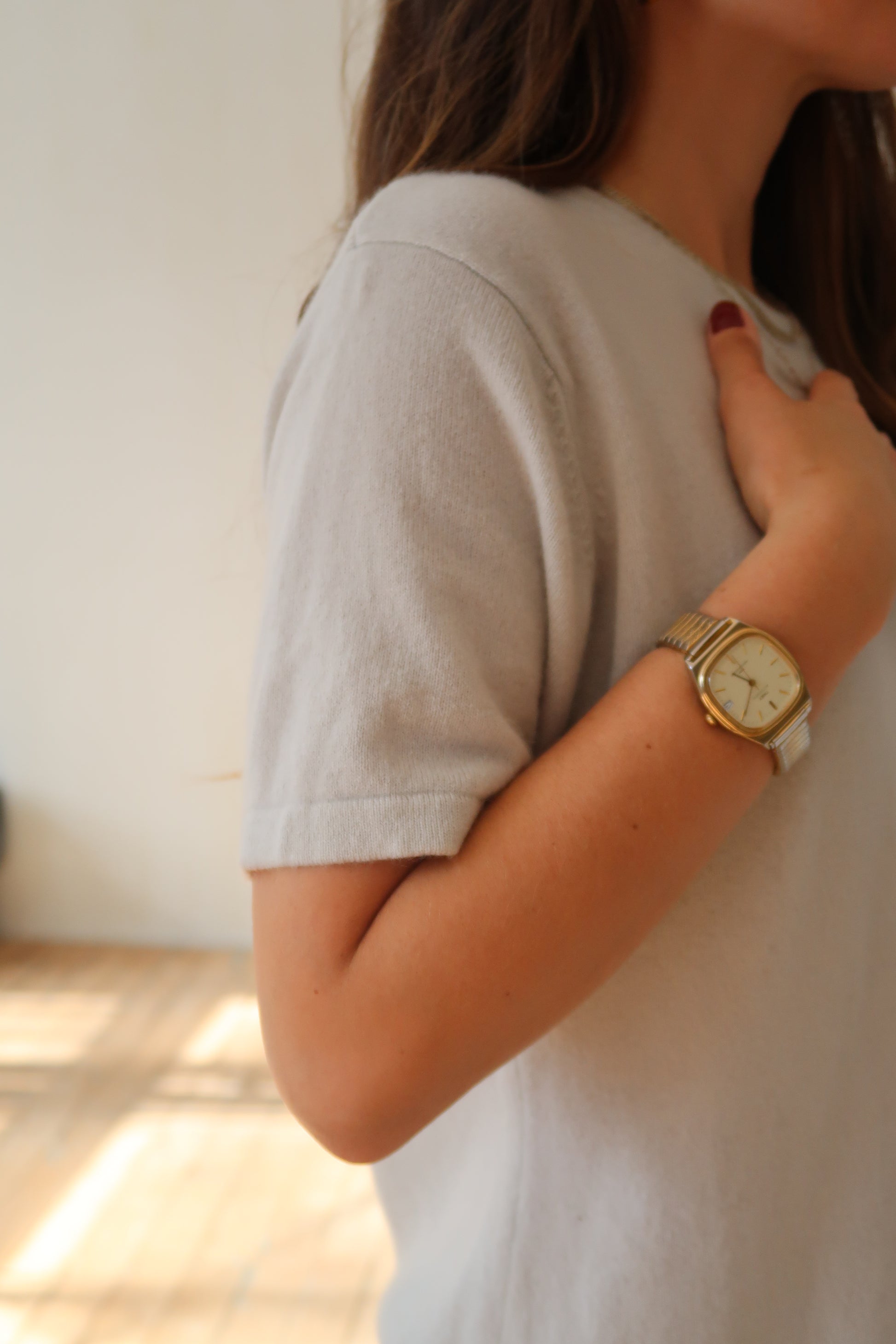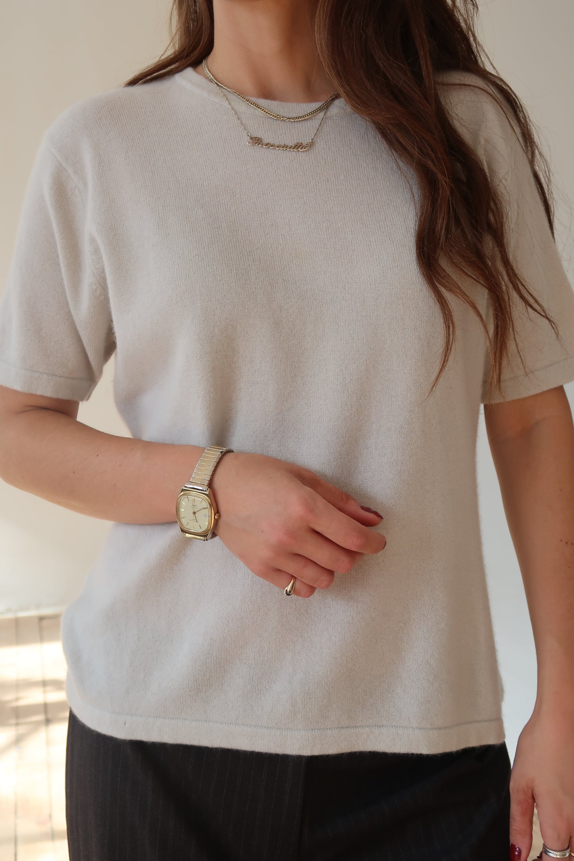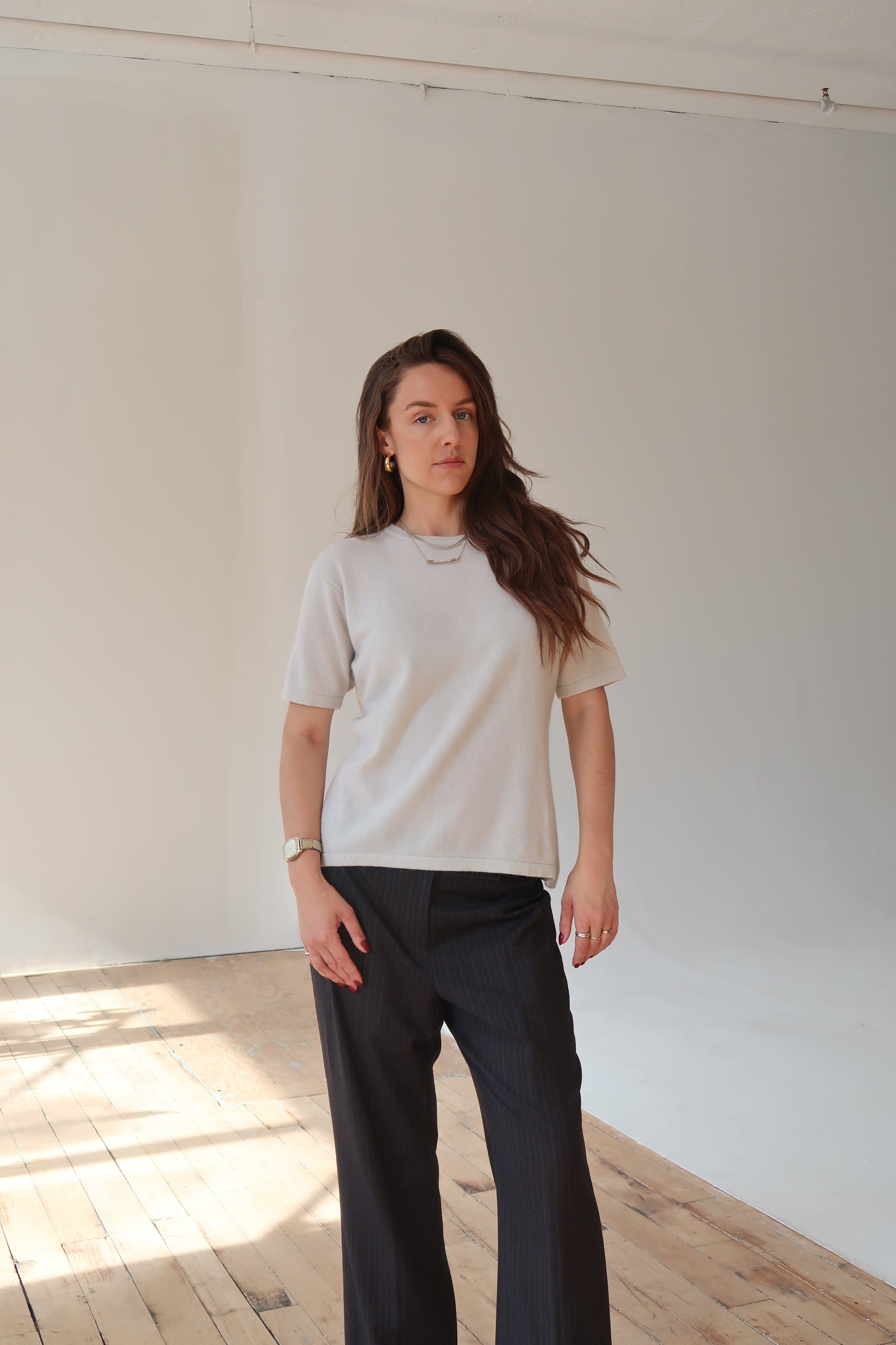 This cashmere t-shirt is the ultimate cozy yet stylish vintage find, ideal for layering or wearing alone. Perfect for the woman who loves the feel of classic vintage luxury.