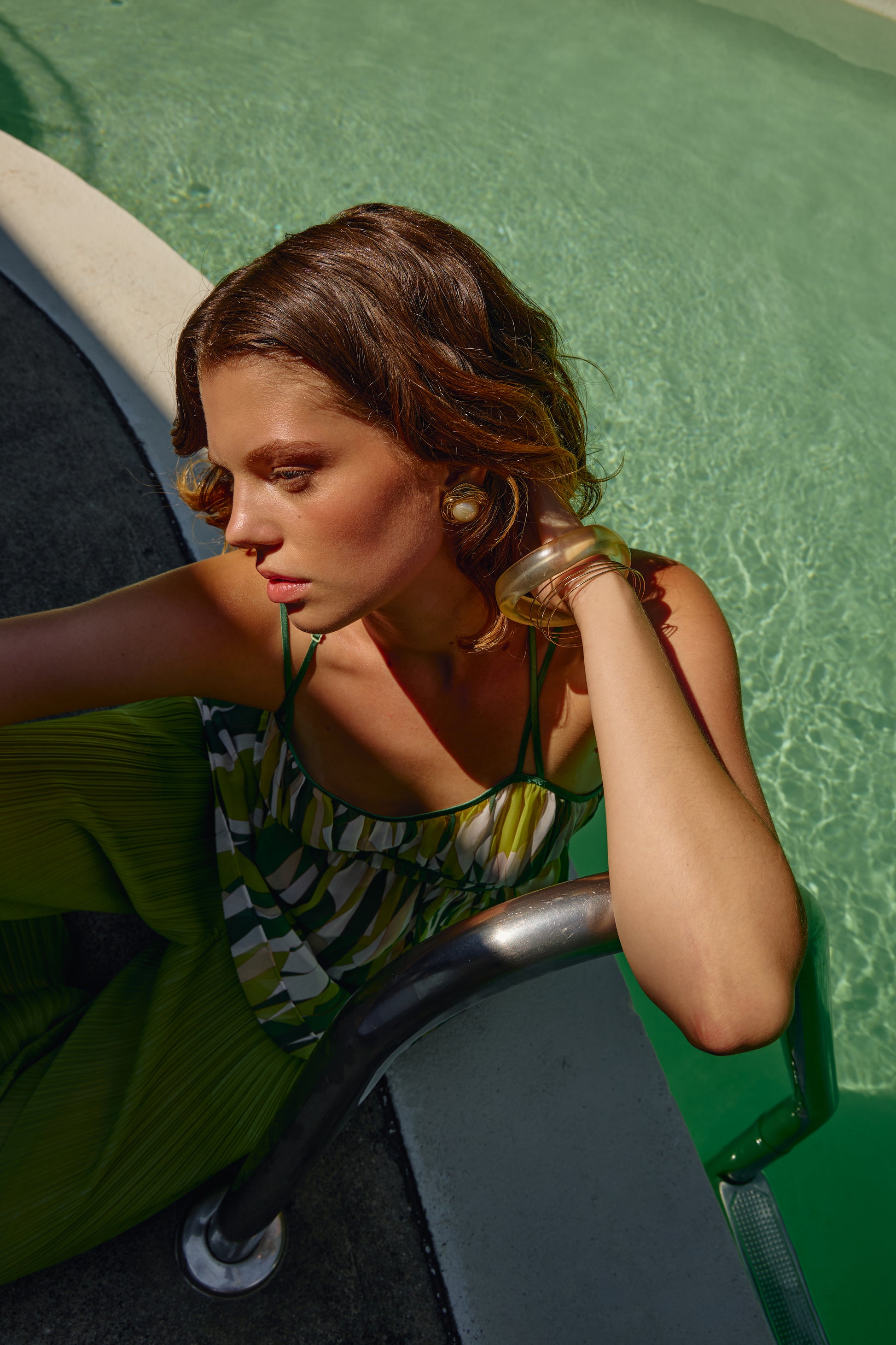 Vintage pleated sage green casual pants - they have an elastic waistband and pockets.